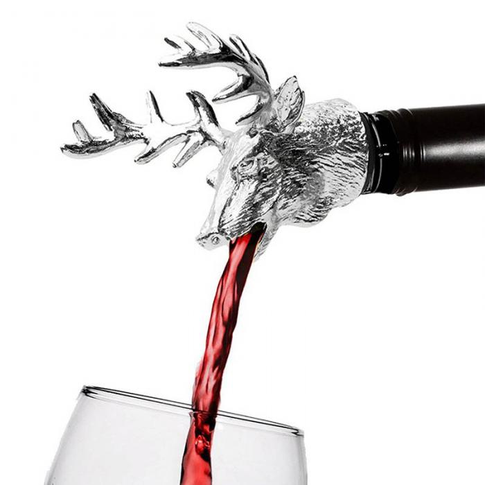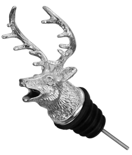 Flaschenaufsatz in Form eines silbernen Metall-Hirschkopfs